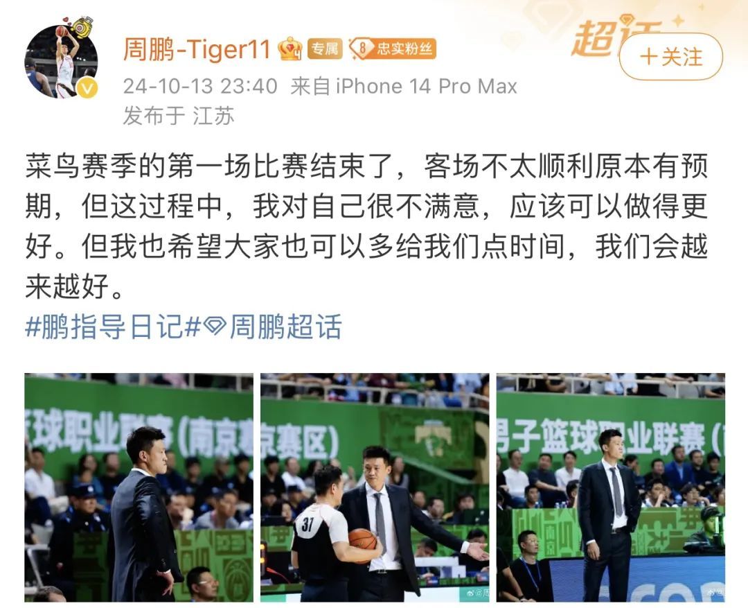 赛后,周鹏在社媒发文:“菜鸟赛季的第一场比赛兑现了,客场不太胜利,蓝本有预期,但这经由中,我对我方很不舒服,应该可以作念得更好。但我也但愿大众可以多给咱们点本领,咱们会越来越好。”