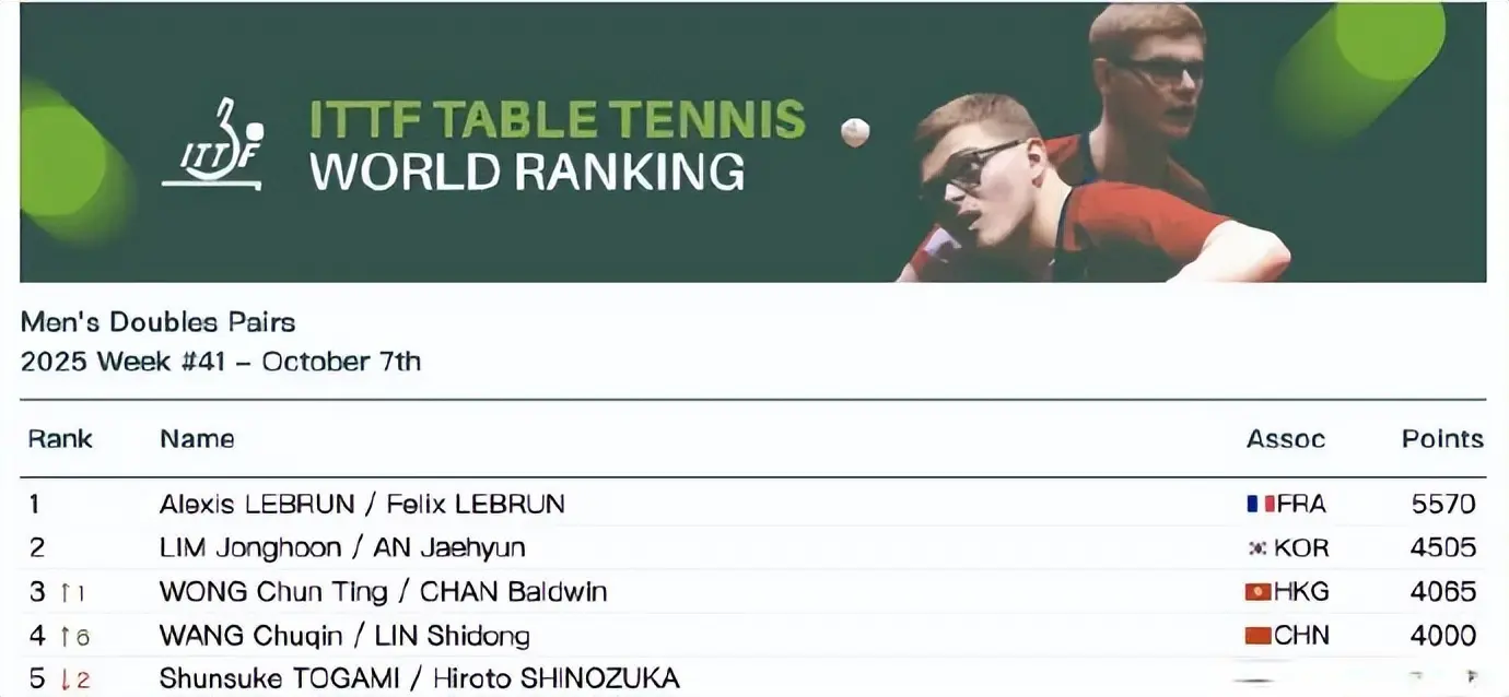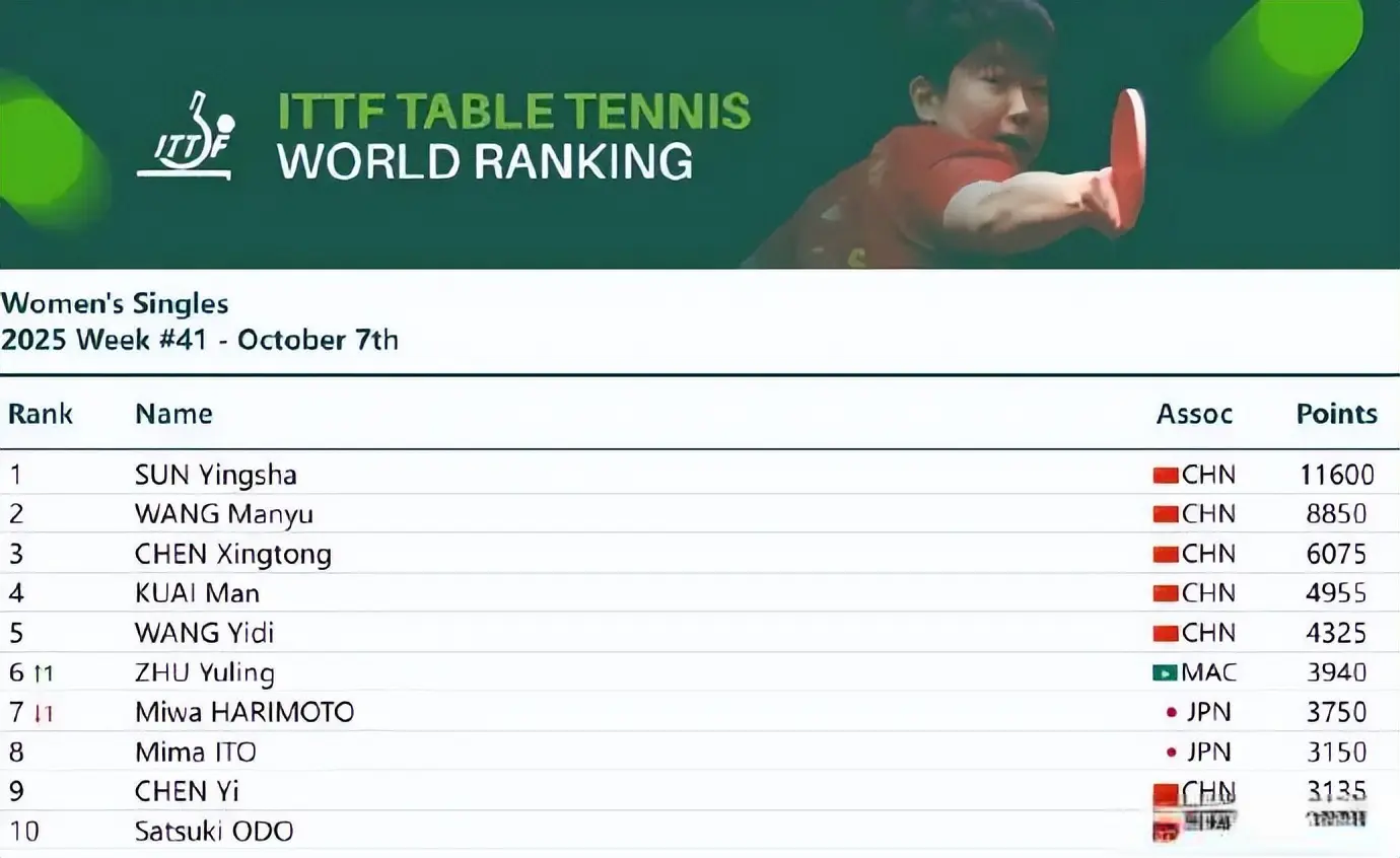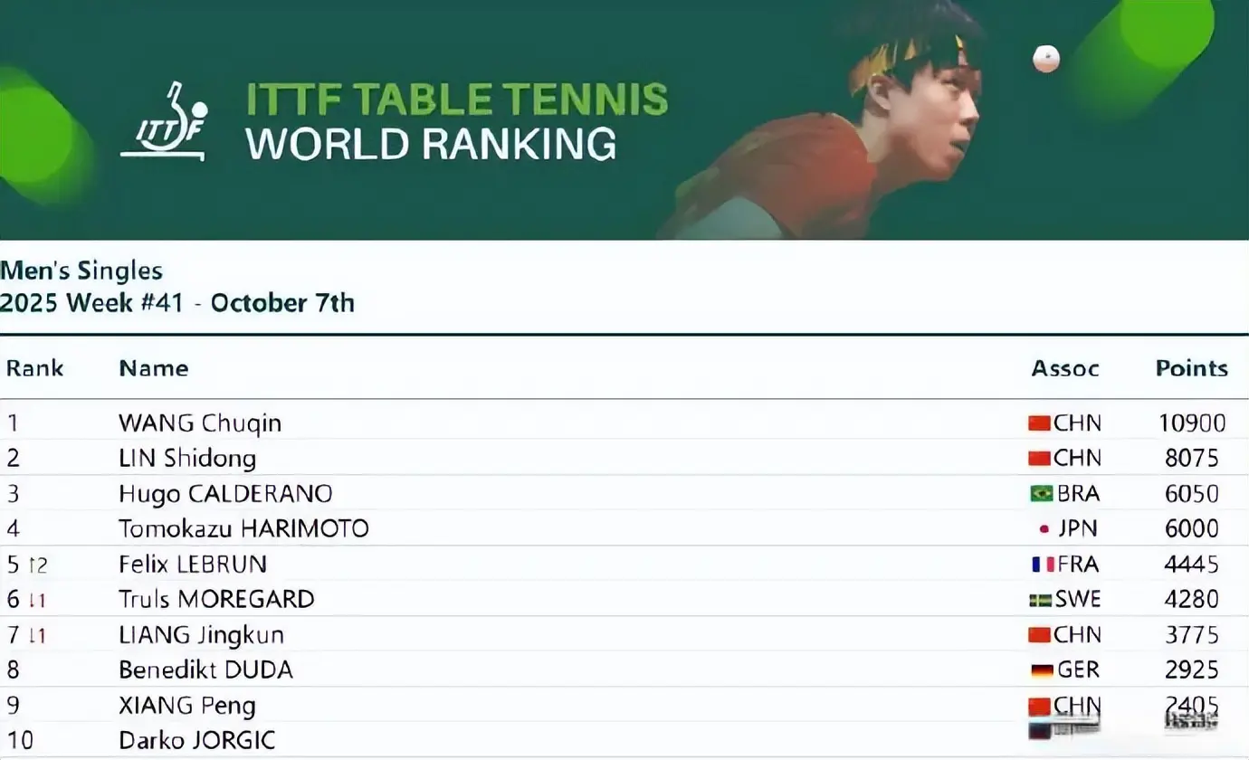 今天体育最新信息,海外乒联公布2025年第41周宇宙排行