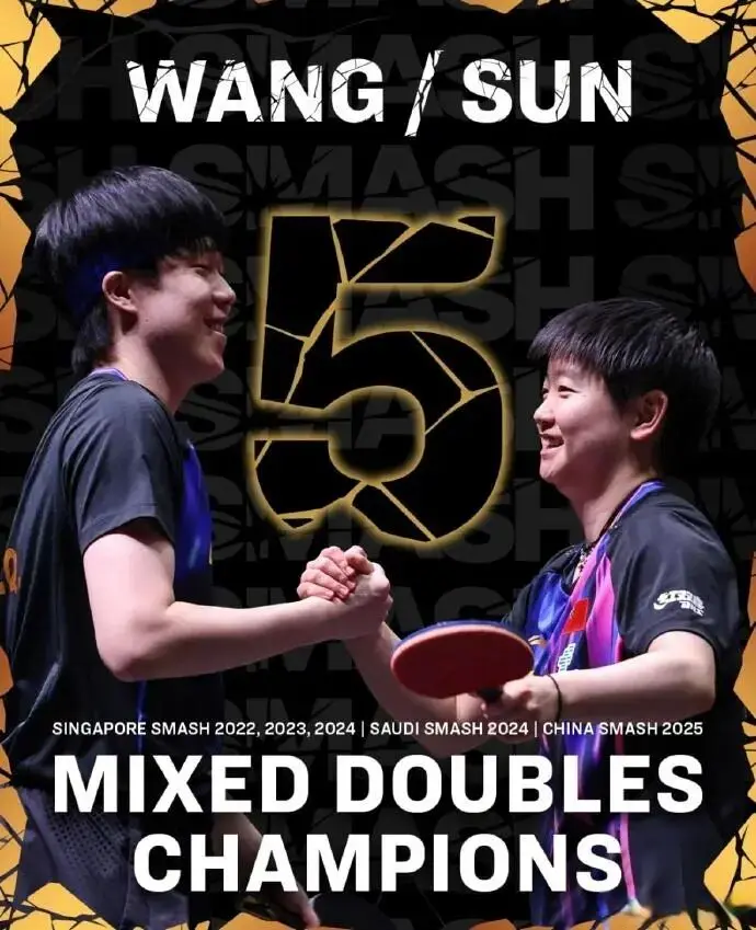 在WTT中国大满贯混双决赛中,王楚钦/孙颖莎礼服队友黄友政/陈熠,赢得WTT中国大满贯混双冠军。至此,王楚钦和孙颖莎的“奥运冠军混双组合”一经赢得了5个WTT大满贯混双冠军。